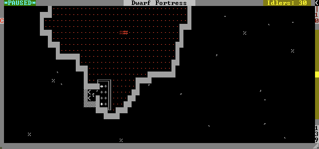 The weapon of their vengeance has yet to be completed, but even now the framework of its construction has been laid. The dwarves haul obsidian brick after obsidian brick up towards the weapon's access tunnels to lay in a stockpile nearby. As they come and go, I can't help but notice how many haulers are carrying infants as well as bricks. Soon, Roomcarnage's population will exceed 200, and the fortress will - in theory - stop receiving migrant waves. At least that will be a mercy - until the population dips back down below 200, that is.