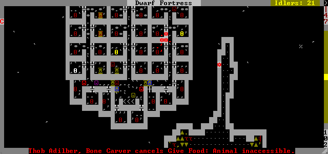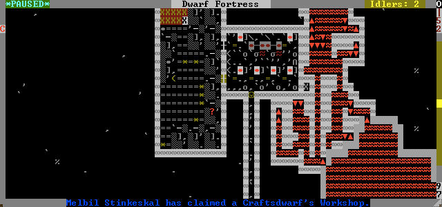 Observe the bustling traffic of Roomcarnage - even now, as things are winding down, with many of the work orders completed, the number of idlers in the fortress hovers in the mid-twenties.