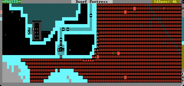 While this new project promises to secure a source of liquid water for the dwarves, the northern canyon holds new possibilities as well. Once the lava dries, it will be a secure and hidden route from the edge of the map to the base of the volcano.