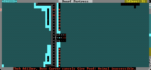 The dwarves continue hauling brick by brick. Each stone block must pass down through the fortress before being brought back up to the airlock, but I am unconcerned with the hauler's route.