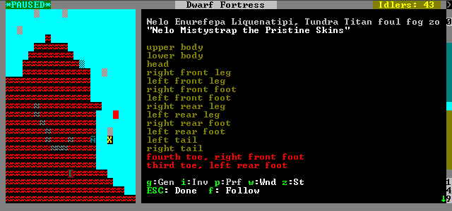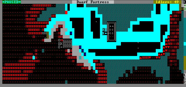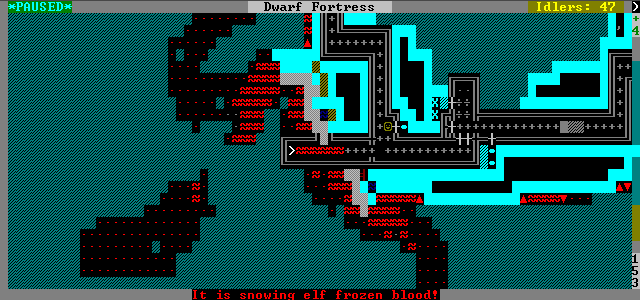 Additionally, I cannot even be sure that the monarch and their royal retinue will arrive from the northwest, where the glacier has been cleared and made safe for the caravan. The map's northeastern edge is a frozen hell of blood, foul fog, and undeath. There is no way that the monarch would survive if they arrived here - even if the dwarves had not recently walled up the only passage leading to this part of the surface, the monarch would be torn to pieces within seconds.