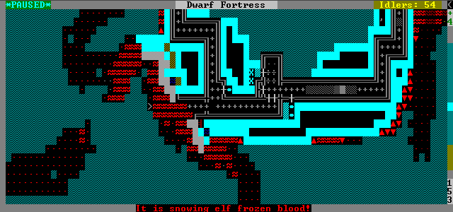 Finally, the last floor is constructed. For the first time in the history of Roomcarnage, the dwarves have gained access to the surface of the vast obsidian plateau - a smoking, jagged hellscape of ice and stone and blood, forged from the glacier itself by the dwarves as a way of purging the surface of undead.