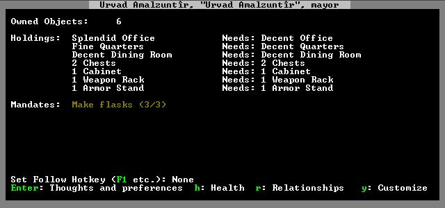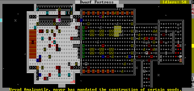 As I watch the fortress, waiting for the jobs to be completed, I notice that the mayor has mandated the construction of goods.