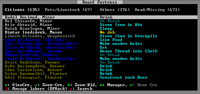 It is the 19th of Felsite, in the late spring of 1215. In just six months, the caravan will arrive - or maybe they won't. Caravans have no reason to call upon fortresses that have already crumbled, and a lot can happen in six months. Even if the dwarves of the Momentous Dye do persist until then, I cannot say if they will be prepared to receive the merchants. That is the goal, however - and, as ever, in spite of constant setbacks, disasters, and tragedies, the brave and foolhardy dwarves press ever onward along their path towards glory.