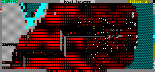 Suddenly, amidst the eternal flow of job cancellations (apparently the fortress has run out of plump helmet spawn - a minor issue, remedied by the dwarves' consumption of plump helmets) I spot a distressing message. A dwarven child has bled to death!