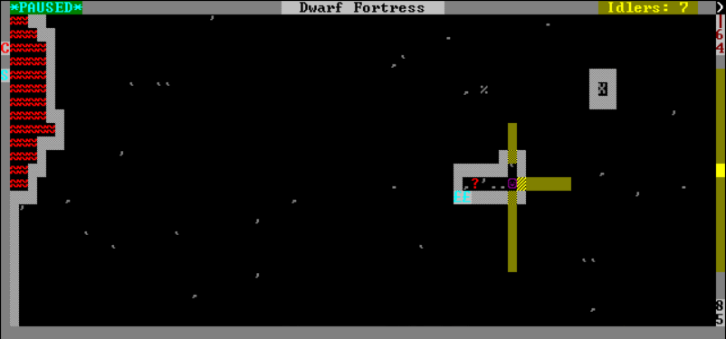 Despite the inevitability of a nameless end, I am not eager to bring ruin upon the fortress, even in these dark, lonely times. The dwarves of the Momentous Dye have dug deep into both of the adamantine pillars available to them, past the magma sea and into the mysterious semi-molten rock that forms the border between this world and the next. I cannot say what distance remains between the mined levels and ultimate doom - I decide to consider other options.